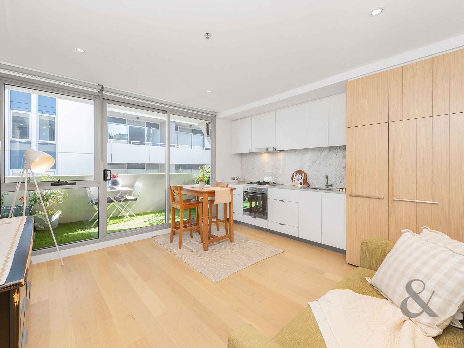 Situated in the waterside apartment complex, this home has a generous bedroom, 1 bathroom (with cavity for laundry facilities), 1 car park, 2 storage cages and a balcony. It also has a dedicated study space, open kitchen, living and dining – perfect for entertaining, great afternoon sun, built in robes for additional storage, secure bike storage, timber floorboards and private entry directly through to Bay Street or Dow Street.