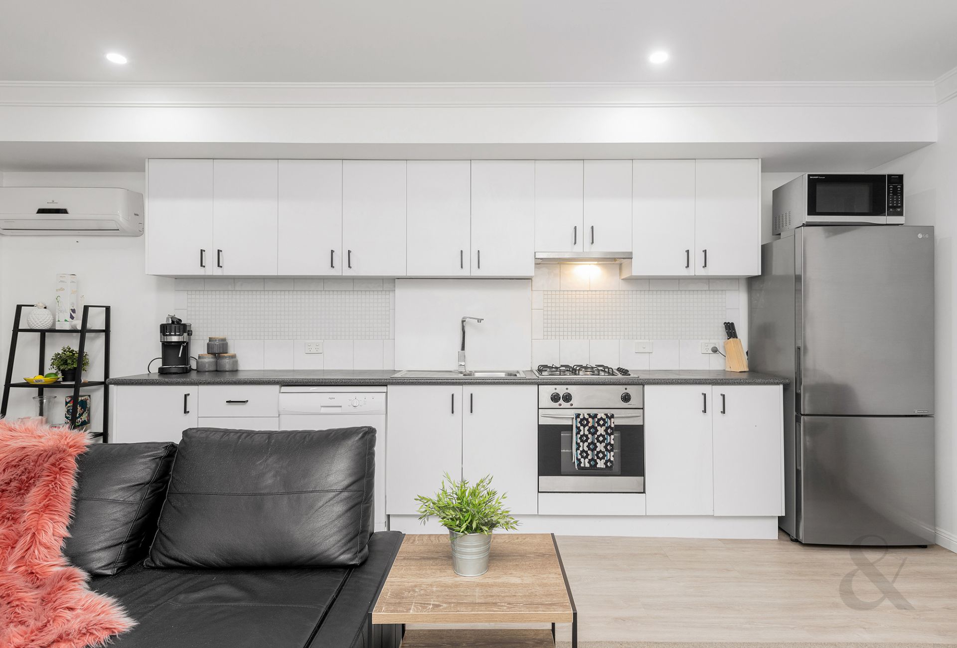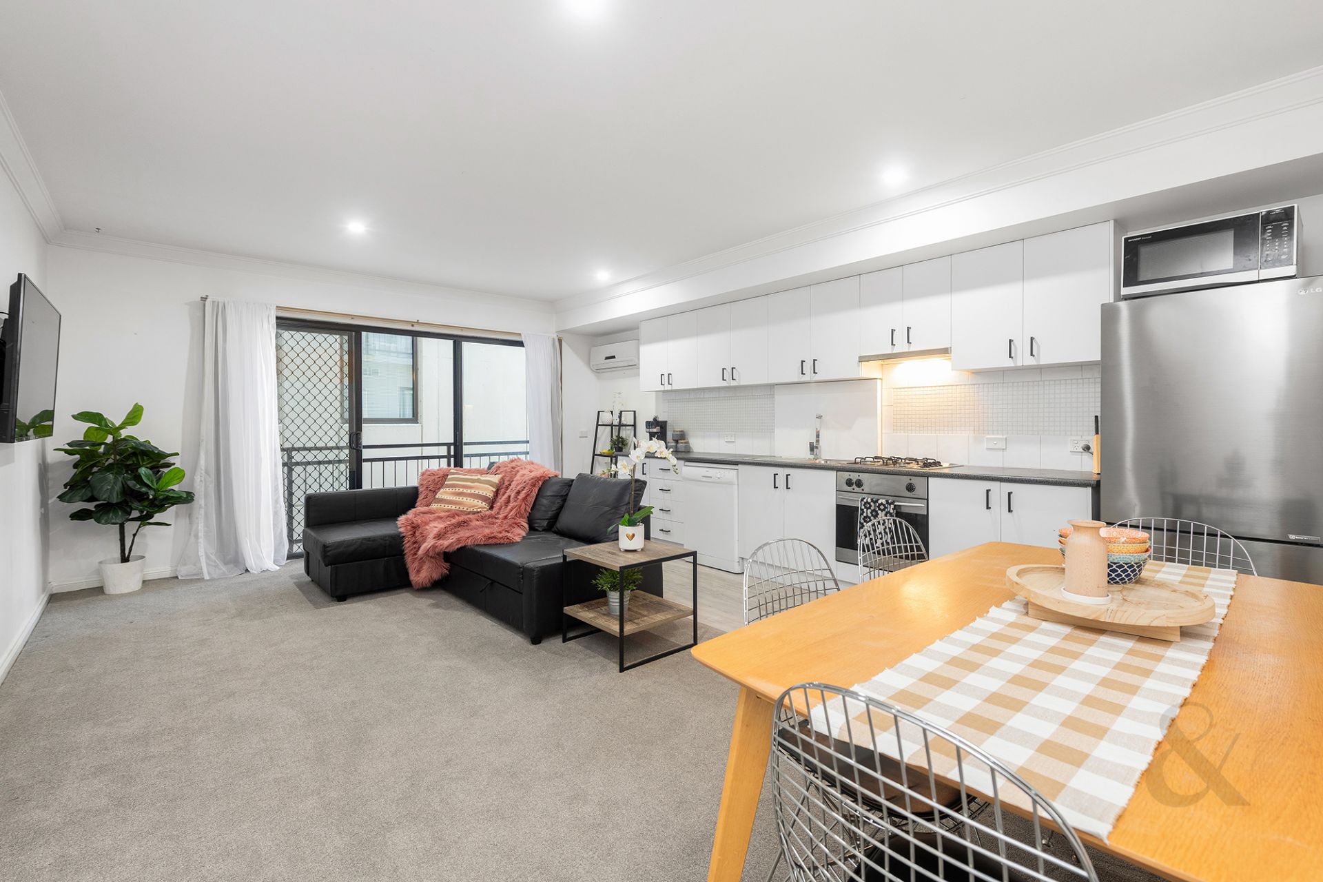 Step inside to find a welcoming open-plan kitchen, living, and dining area, complete with a built-in robe for ample storage. The property boasts split system heating and cooling, ensuring year-round comfort, and a Euro laundry for added convenience. Relax on the balcony with its elegant sliding glass doors, perfect for enjoying the fresh air and natural light.