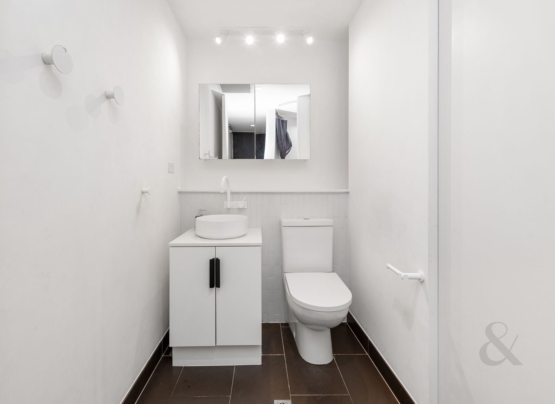 The bedroom is well proportioned with a full-length built-in robe, and the dual-entry bathroom doubles as an ensuite – a small detail that makes a real difference to how the apartment functions day to day. Euro laundry and a secured car space complete the picture.