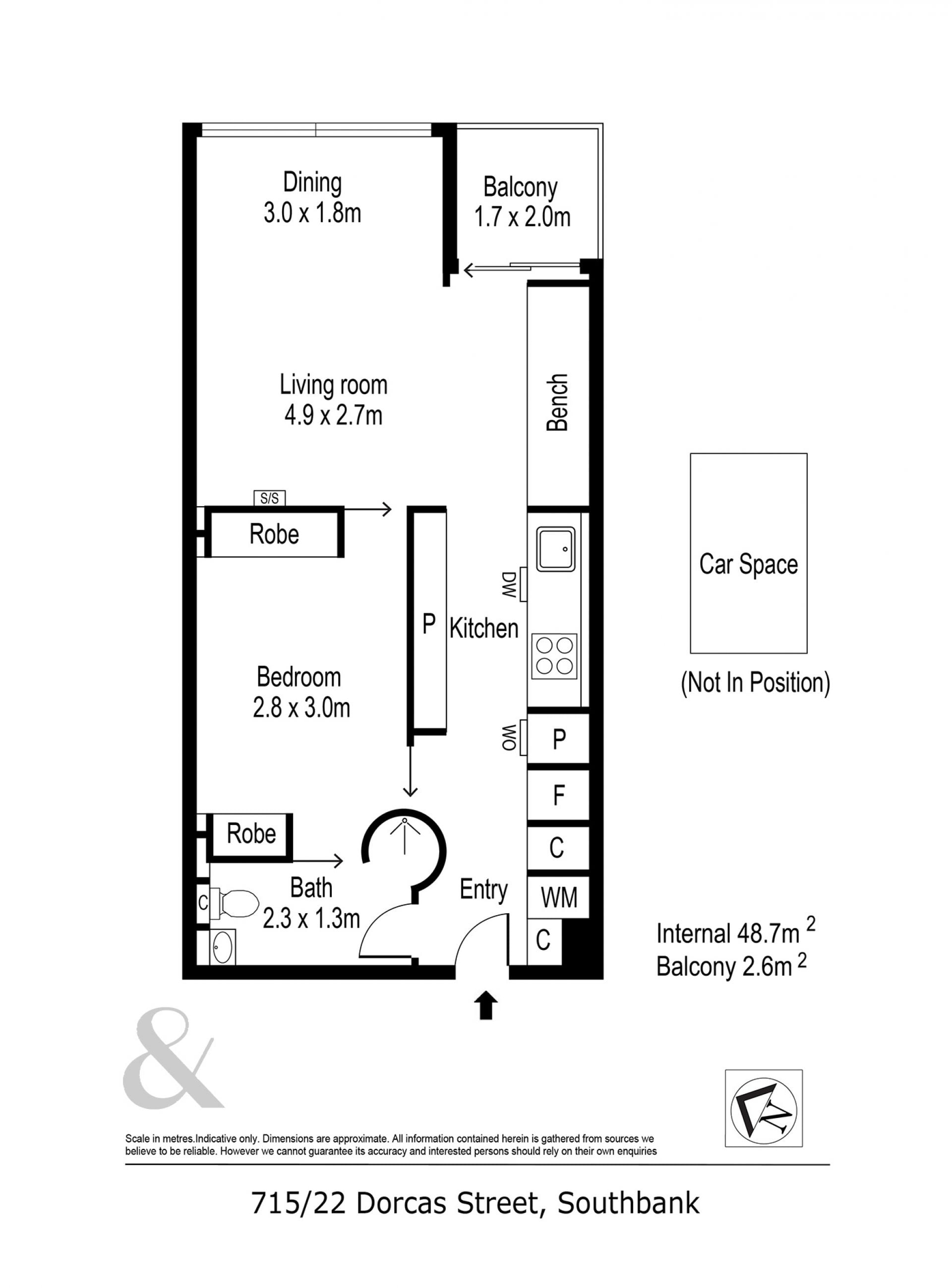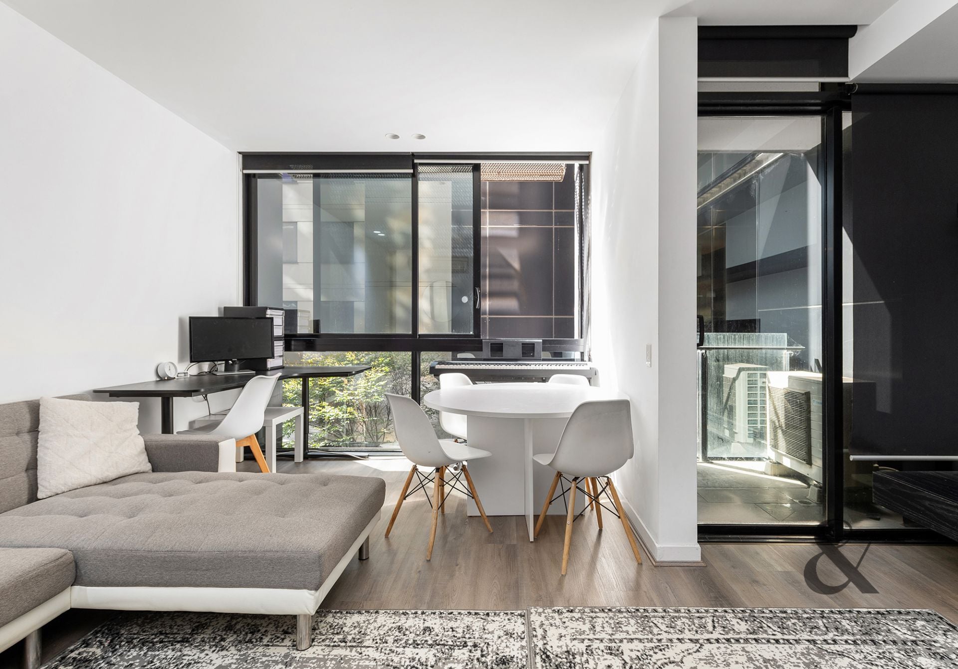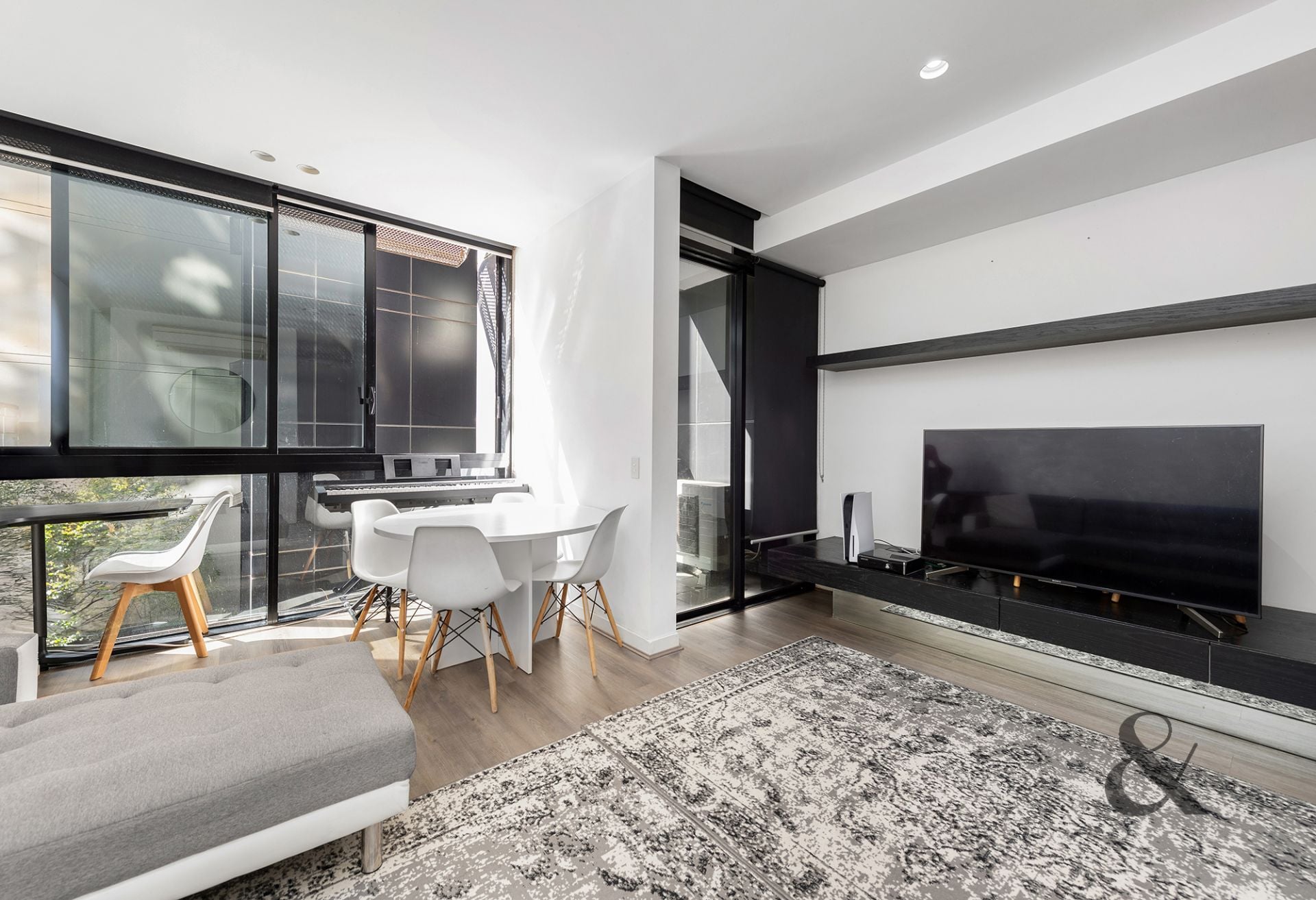 Sitting in the Elm building in the heart of Southbank, this one-bedroom apartment is thoughtfully designed and genuinely easy to live in. Floorboards run through the open plan living and dining area, the kitchen features a stone bench top, gas cooktop, integrated dishwasher drawer and ample storage, and the balcony provides a private outdoor space to step away from it all.